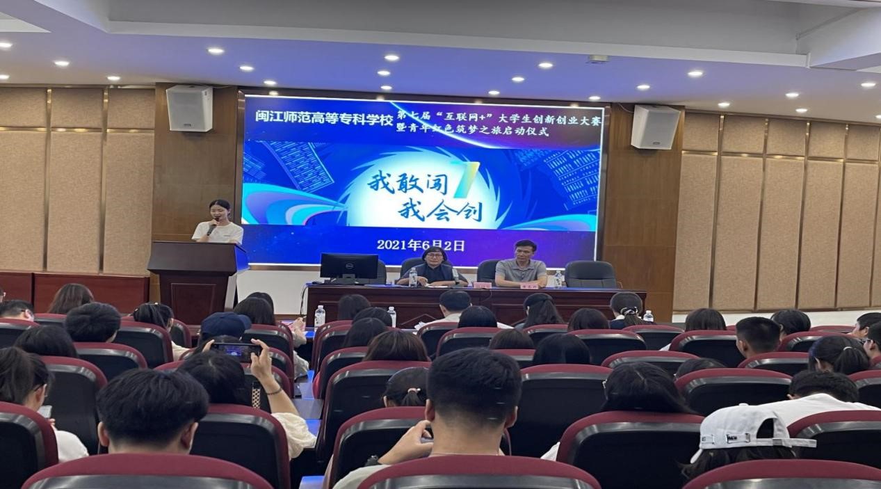 闽江师范高等专科学校第七届“互联网+”大学生创新创业大赛暨“青年红色筑梦之旅”活动启动仪式于6月2日下午在仓山校区学术报告厅举行,此次大赛由学生处和三创学院共同组织。学生处处长张信容、三创学院副院长黄昌兴以及各系领导、指导老师等参加大赛活动。从初赛脱颖而出的21支团队进入校级现场路演,各系师生代表共计265人参加现场观摩。