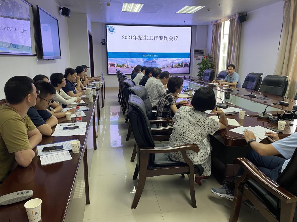 6月21日下午,我校在旗山校区九楼会议室召开2021年招生工作专题会议,安排部署学校2021年招生工作。校长杨建义出席会议,学生处、教务处、纪检监察审计室负责人,各系主任和招生宣传工作负责人参加会议,会议由学生处处长张信容主持。