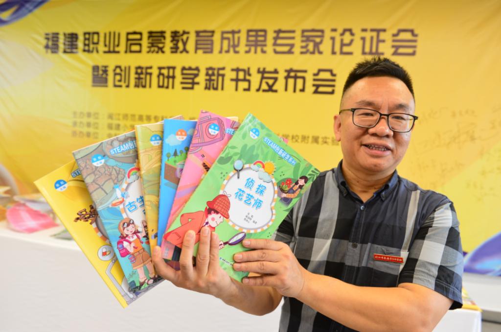 福建小学公共实训基地负责人张航介绍,“STEAM创新研学系列丛书”在此次发布会上正式亮相,该丛书由闽江师专师生和中小学校一线教师携手编写,以航海家、医生、建筑师、音效师、小侦探、花艺师、古生物学家、营养师、气象员、灯光师、桥梁工程师、咖啡师等12种生活中常见职业为原型,从学生的发展需要出发,在生活情境中发现问题,转化为课程主题,通过探究、服务、制作、体验等方式,将职业启蒙教育与创新研学教育相结合。