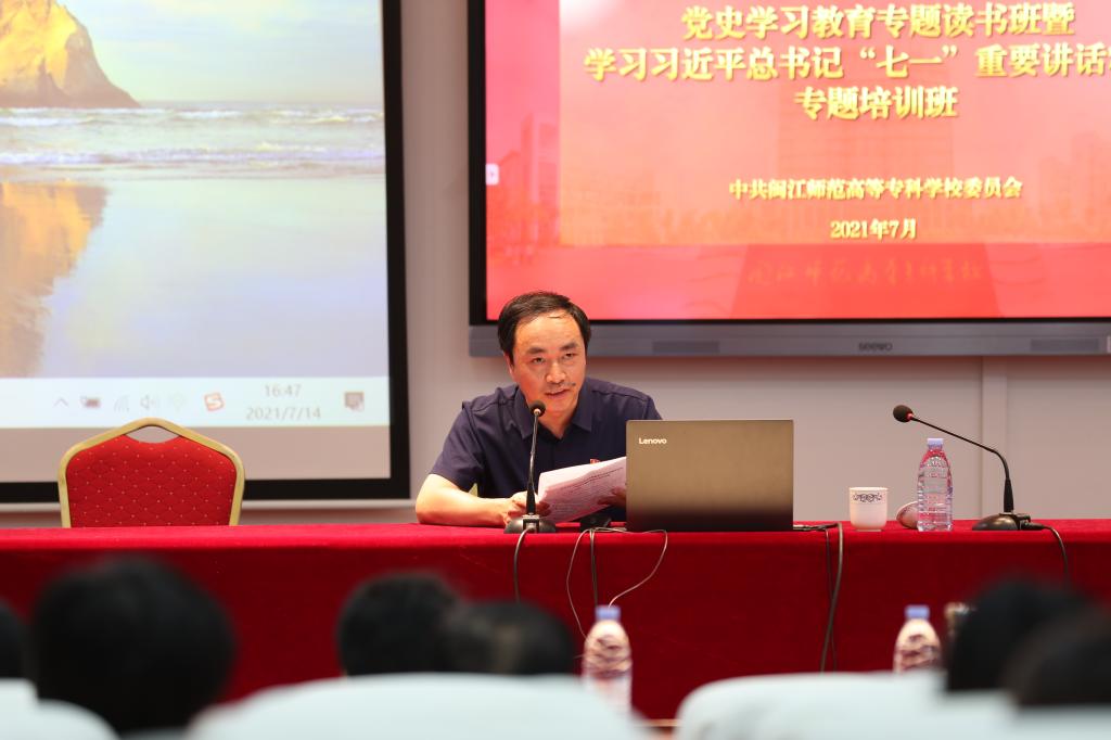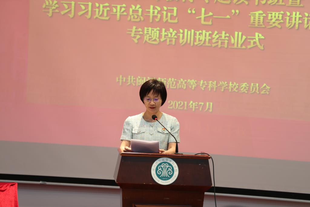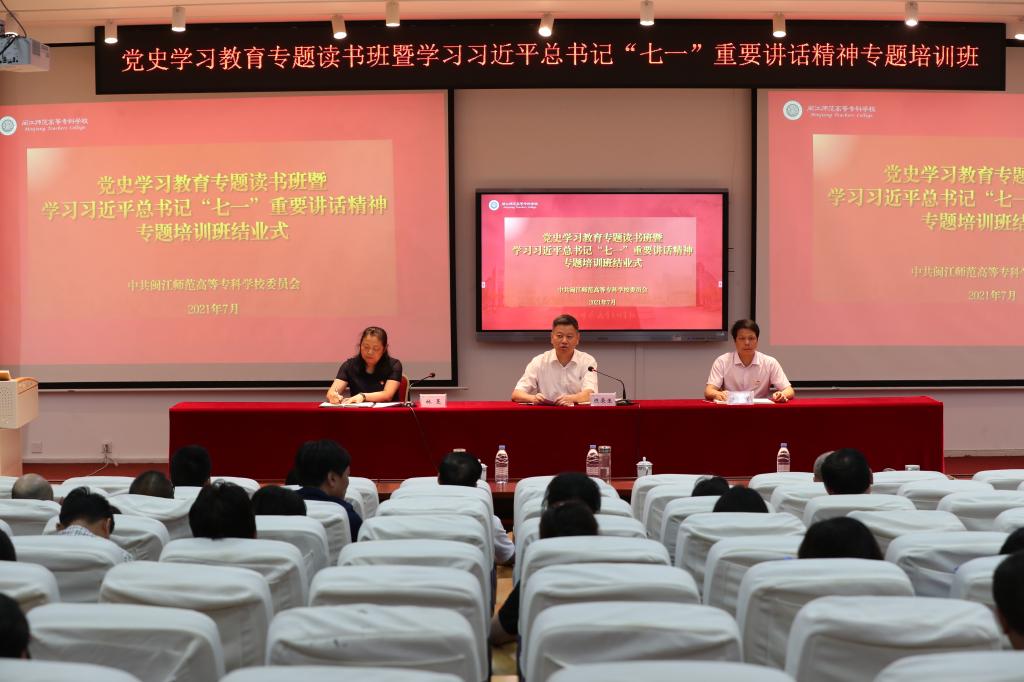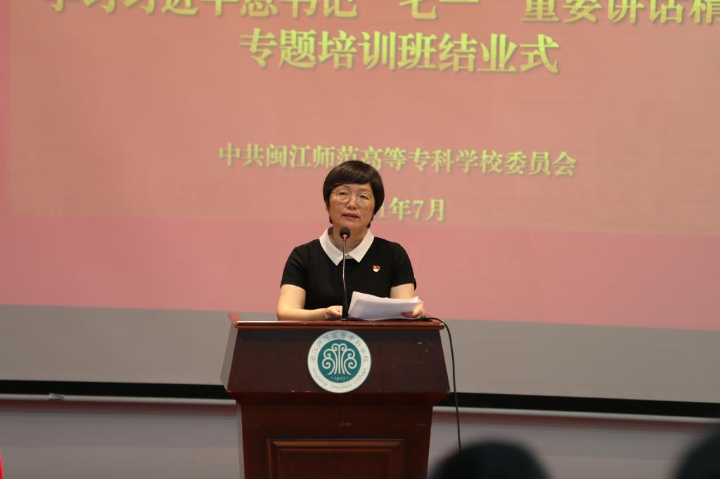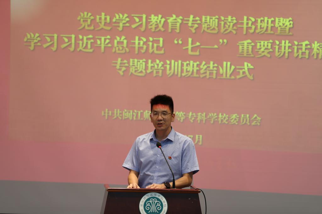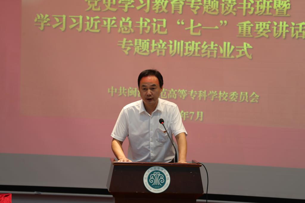 7月14日下午,我校党史学习教育专题读书班暨学习习近平总书记“七一”重要讲话精神专题培训班结业式在旗山校区举行。校党委书记陈荣生作结业讲话,校长杨建义、副校长林旻,全体副科级及以上干部,党总支、直属党支部书记参加结业式,林旻主持结业式。