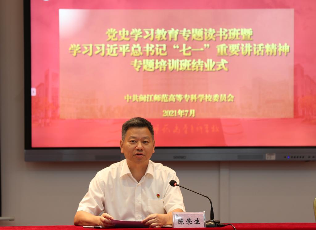 陈荣生对研讨班作全面总结发言。他认为,这次研讨班有质量、有成效,达到了提高思想认识、凝聚精神力量的预期目的。他就进一步巩固好专题读书班学习成果,促进学校党史学习教育走深走实提出四点要求: