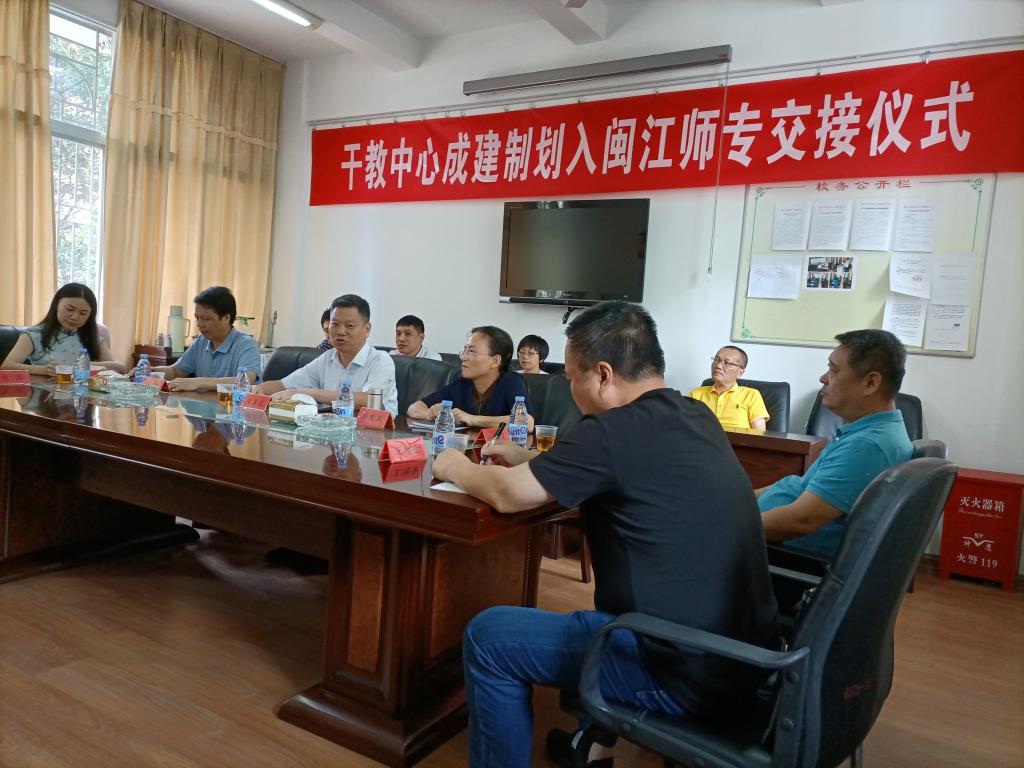 7月15日上午,福州市财政局干部教育中心成建制划入闽江师范高等专科学校交接仪式在市财政局干教中心会议室顺利举行,校党委书记陈荣生,校党委副书记、校长杨建义,福州市财政局二级调研员蒋爱玉,闽江师专、市财政局有关部门负责人及原市财政局干部教育中心全体在编人员出席会议。