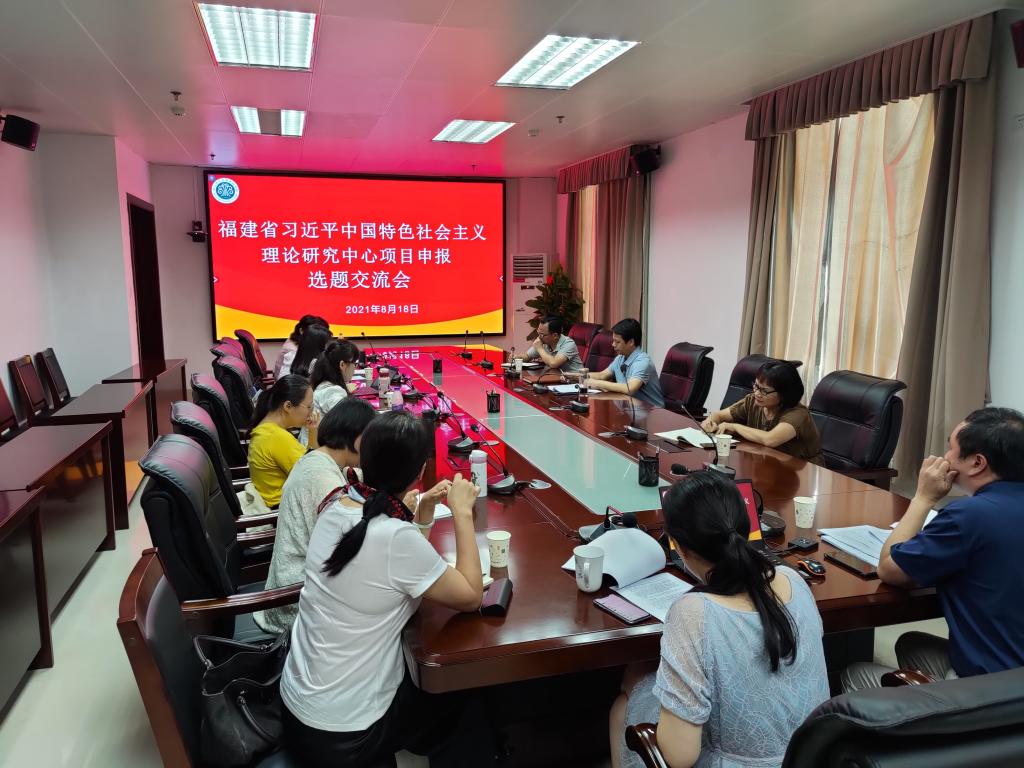8月18日下午,我校召开2021年福建省习近平新时代中国特色社会主义理论研究中心项目申报选题交流会。校长杨建义、科研处负责人、项目申报人以及全体马克思主义学院教师参加了交流会。