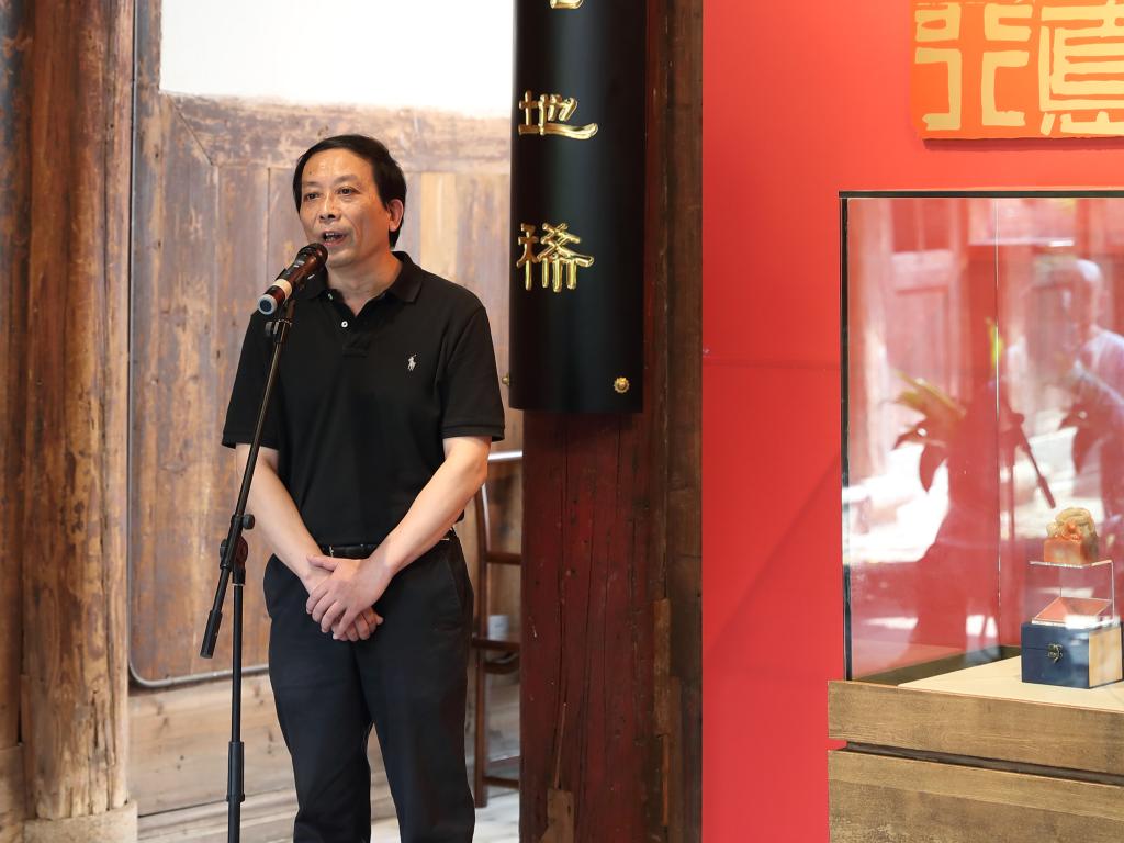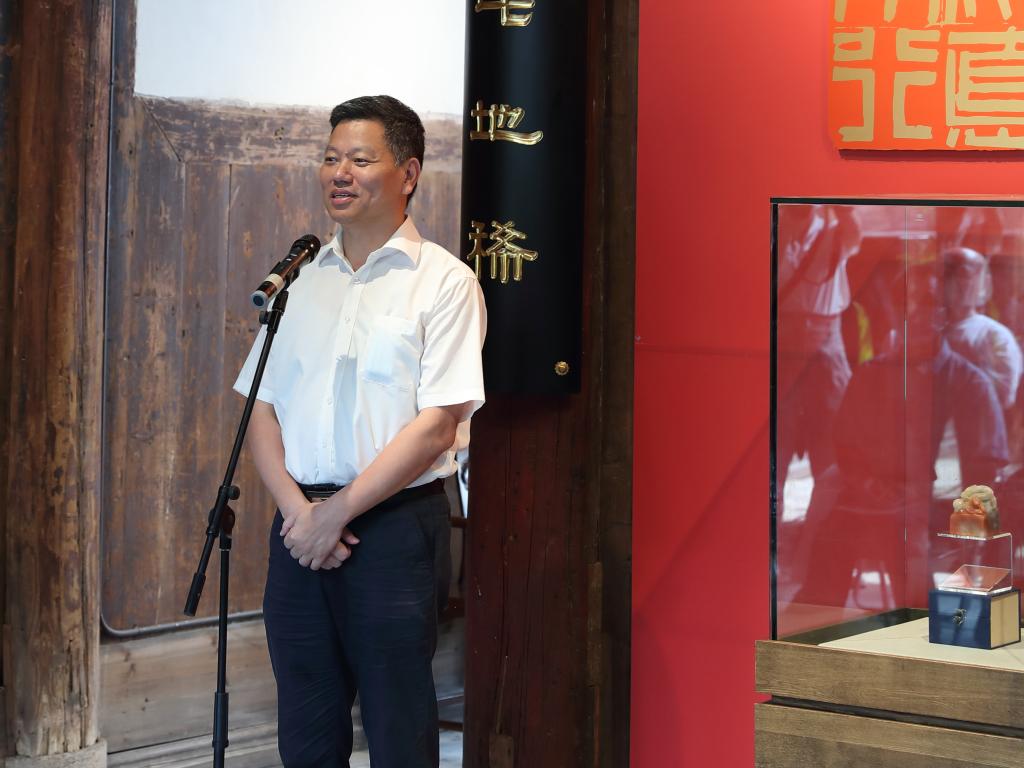 展览由闽江师范高等专科学校主办,福州市美术馆协办。福建省文联副主席王来文、市委党史学习教育第五巡回指导组组长王玉琴、市委宣传部部务会成员胡金清、市文联党组成员林朝晖及闽江师范高等专科学校领导班子出席开幕式。教育部研究生教育教学指导委员会委员、全国高校美育教学指导委员会委员李豫闽、福建省书法家协会副主席朱以撒、福建省书法家协会驻会副主席、秘书长方松峰、福建省书法家协会副主席傅永强等专家、学者、篆刻艺术爱好者参加开幕仪式。