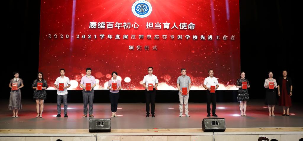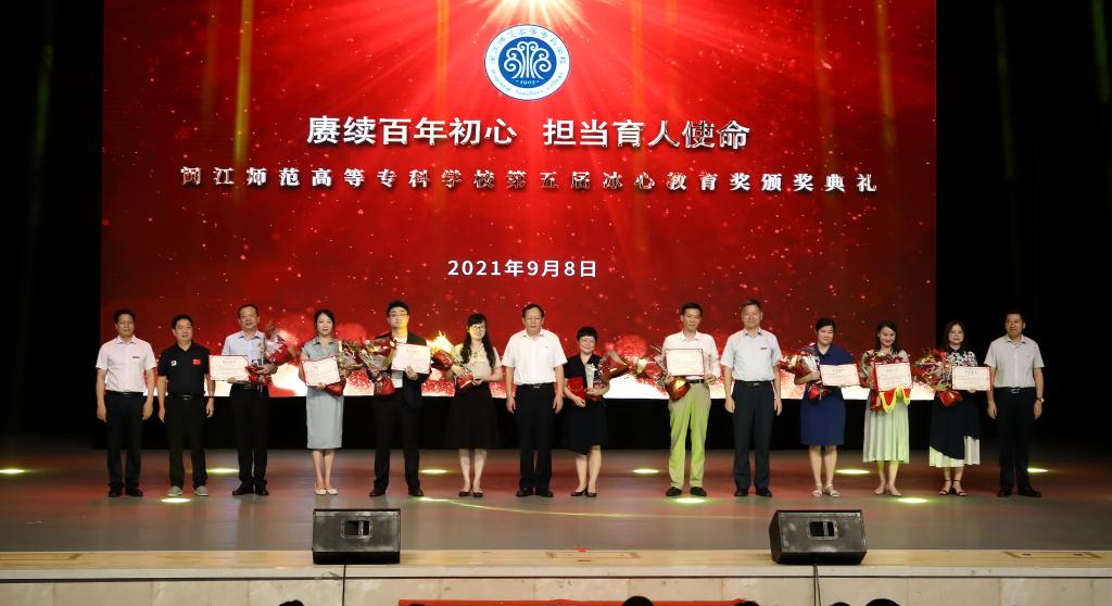 赓续百年初心,担当育人使命。在第37个教师节来临之际,9月8日下午,我校于旗山校区学术报告厅隆重召开2021年教师节庆祝大会暨第五届“冰心教育奖”颁奖典礼,表彰一批在勇担时代使命中有突出表现、在我校教育事业中做出重要贡献的先进个人和先进集体。省委党史学习教育第一巡回指导组副组长刘新,市委党史学习教育第五巡回指导组副组长陈鉴学,福州市政协原副主席郑勇,闽江师专党委书记陈荣生、校长杨建义、副校长林旻、谢敏峰、纪委书记陈群、原副校长张昌勋等出席颁奖礼,全校副科级以上干部、附属单位领导班子成员、教师代表530余人参会。
