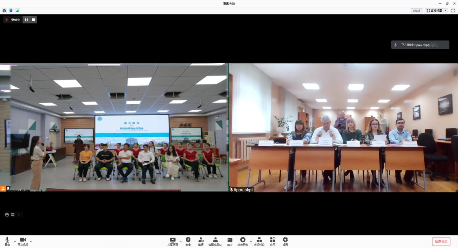 杨建义校长代表学校致辞,对参加此次交流会的俄方院校教师们表示欢迎。他指出,希望此次活动的举办能够促进双方院校在人才培养机制、目标、模式等方面的了解,进一步推动在课程开发、合作办学、学分互认、师资培训和文化交流等方面的深化合作。他向对方发出邀请,欢迎对方在合适的时候到我校参观交流。乌留莫夫·谢尔盖·维克多洛维奇院长表示,很高兴有机会参加此次线上交流会,这是两校在签署合作协议框架后首次举办的活动,希望通过此次活动加深对彼此的了解,为开展更大范围更深层次的交流合作奠定良好基础。