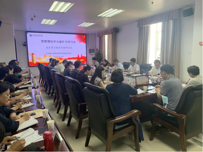 10月15日下午,我校召开党委理论学习中心组(扩大)学习会,专题学习中国共产党人的精神谱系,会议由党委书记陈荣生主持。校领导、各处室、系部负责人、党总支、直属党支部书记、附属单位党政主要负责人参加会议。