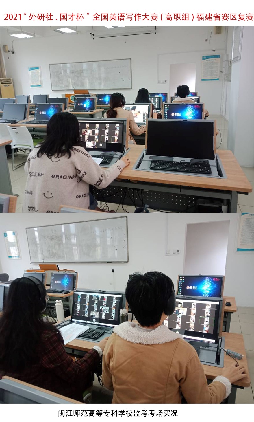 10月24日,由教育部职业院校外语类专业教学指导委员会指导,外语教学与研究出版社、中国职业外语教育发展研究中心、福建省高等职业院校外语教学指导委员会联合主办,闽江师范高等专科学校承办的2021“外研社·国才杯”全国英语写作大赛(高职组)复赛(福建赛区)于闽江师范高等专科学校隆重举行,来自全省32所高职院校,共计73位选手参加。