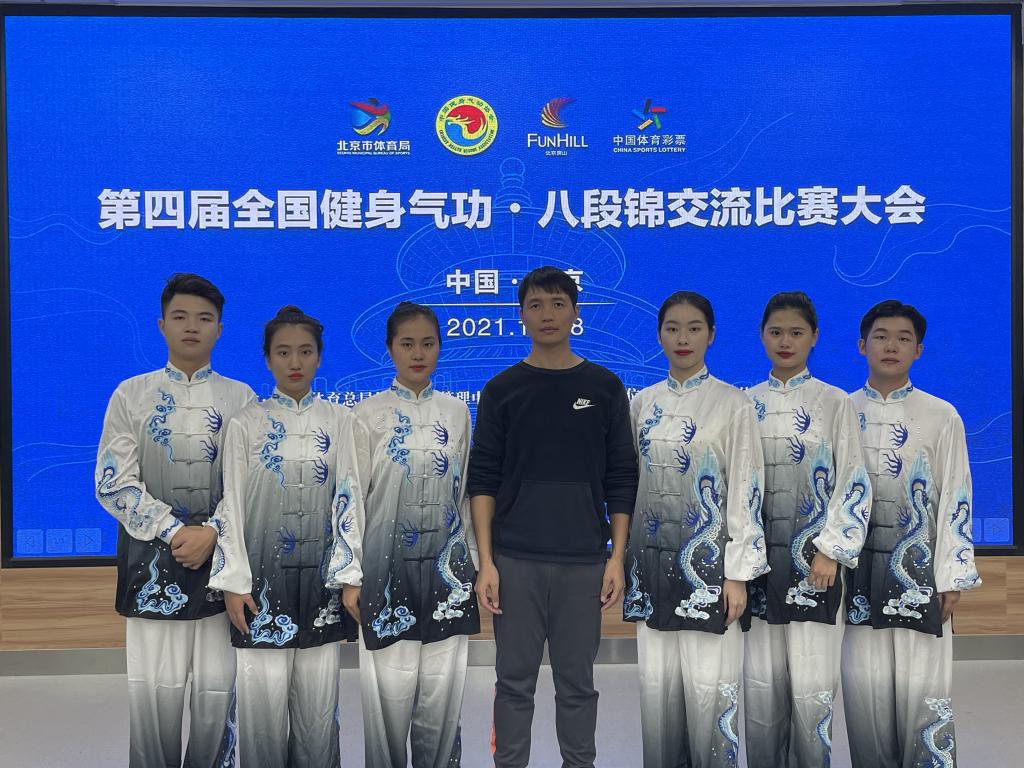 本次比赛,我校同全国名校、省市代表队等同台竞技,在薛庆云、谢群喜两位老师指导下,由初教系(龙莉娜、潘诺谣)、艺术系(林燕梅、骆翊东)、外语系(陈思慧、陈祥宇)6位同学组成我校健身气功代表队参加此次比赛。经过激烈角逐,我校健身气功代表队斩获全国八段锦集体项目二等奖(排名第一),个人项目有两位同学挺进全国前8。其中外语系陈思慧同学荣获个人项目第5名、初教系潘诺谣同学荣获个人项目第8名。