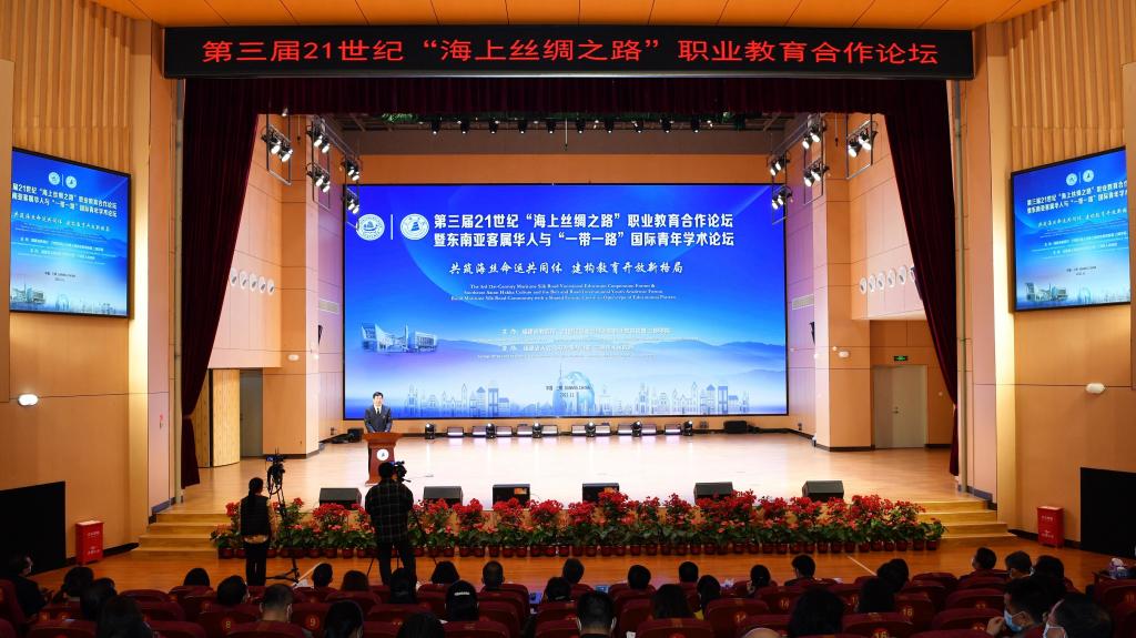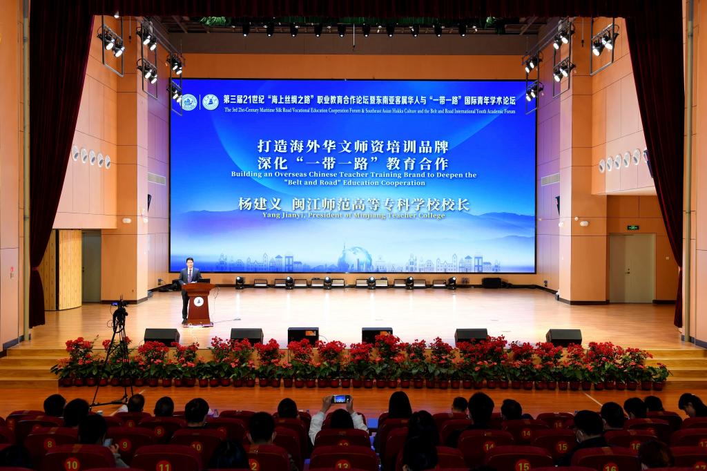 论坛围绕“共筑海丝命运共同体 建构教育开放新格局”主题,由中国职业技术教育学会会长、教育部原副部长鲁昕在线上作了《拥抱数字经济时代,携手共建职业教育》主旨报告。10位海内外嘉宾作了主题交流发言。我校校长杨建义在会上作了以“打造海外华文师资培训品牌,深化“一带一路”教育合作”为主题的发言。他表示,华文教育是在海外传承、弘扬中华优秀传统文化的重要途径。我校通过设立“中柬华文师资培训中心”、开办海外华文师资培训班、实施“留学闽师”计划、举办海外华裔青少年开展中文短训夏、冬令营、组建“闽师名师巡讲团”等方式,打造具有闽师特色的海外华文师资培训品牌,搭建“一带一路”职业教育合作交流新平台,培养教学技能素质高、华语水平优秀的国际化华文教育人才。
