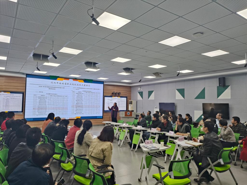 林旻回顾了近两年我校在福建省职业院校技能大赛中取得的优异成绩,并进一步通过具体的数据展示综合分析了明年的比赛前景,展望参赛备赛工作。她指出,当前福建省职业院校技能大赛竞争激烈、不进则退,要认真思考我校的进步空间,精心准备比赛,努力在赛事中取得更好的成绩。