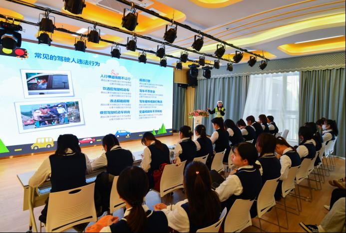 除了交通安全教育游戏活动,“护苗行动,娃娃抓起”——交通安全常识小课堂,“道路千万条,安全第一条”——交通安全知识培训会,交警叔叔阿姨还当起了“老师”, 通过通俗易懂的交通法规讲解、生动事例和知识抢答,让在场的师生和小朋友接受了别样的交通安全教育。