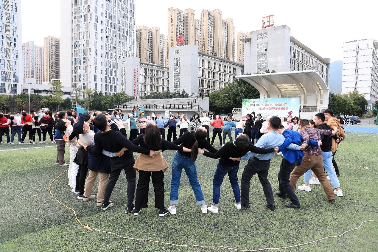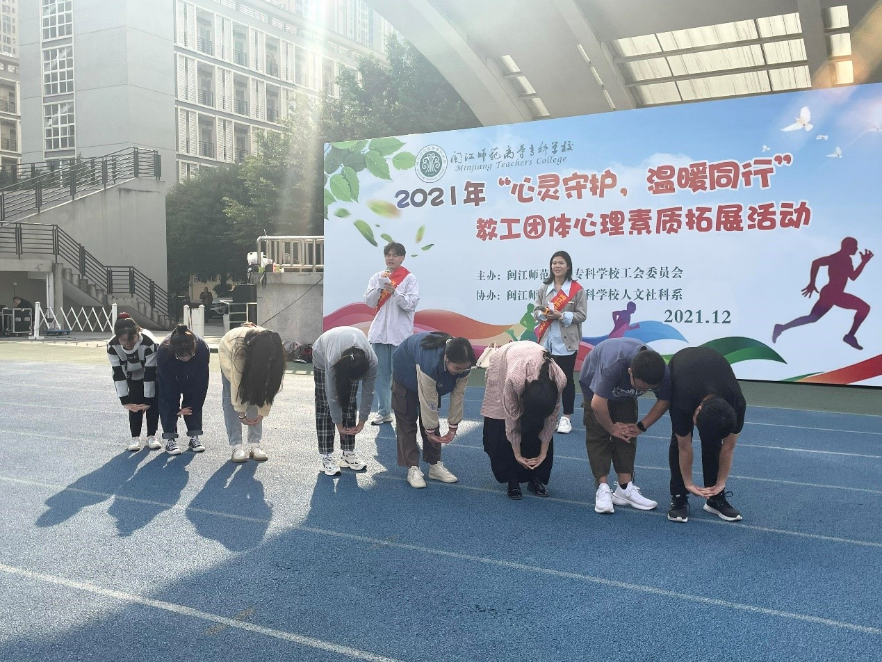 为推动落实福州市职工温暖工程2021年心灵守护服务工作,响应校党委号召,关心关注全校教职工身心健康,更好地满足教工们对美好生活的需要,增强教工团队凝聚力和向心力,12月8日下午,校工会在旗山校区操场开展2021年“心灵守护,温暖同行”教工团体心理素质拓展活动。校党委书记陈荣生,副校长、工会副主席林旻以及全校19个工会小组(含医护学院、附小、附幼二级工会)300多位教职工一起参加了此次活动。