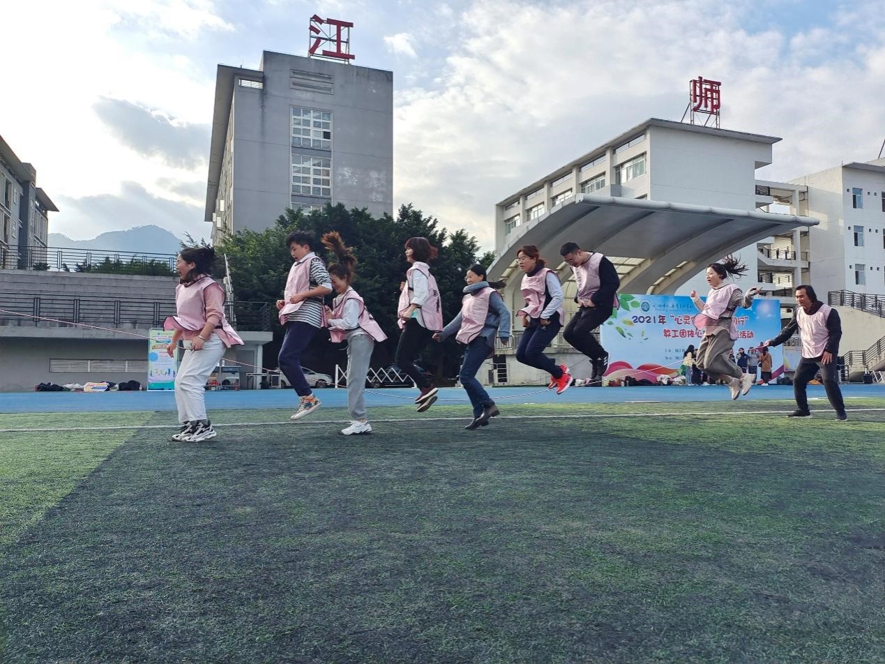 通过心理素质拓展活动,老师们放松身心,释放压力,校园里充满欢声笑语。
