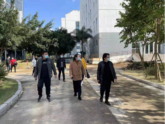 在甘蔗校区,检查组实地查看了学生返校通道、食堂、宿舍、教学楼等重点场所,并对学生返校安排、宿舍管理、疫情防控应对措施及校园环境绿化建设等方面进行了全面检查指导。副校长林旻要求在严格落实疫情防控的基础上,精心组织、科学施策,全面做好疫情防控和开学准备工作,确保师生生命安全和身心健康,平稳有序推动各项教育教学活动顺利开展。