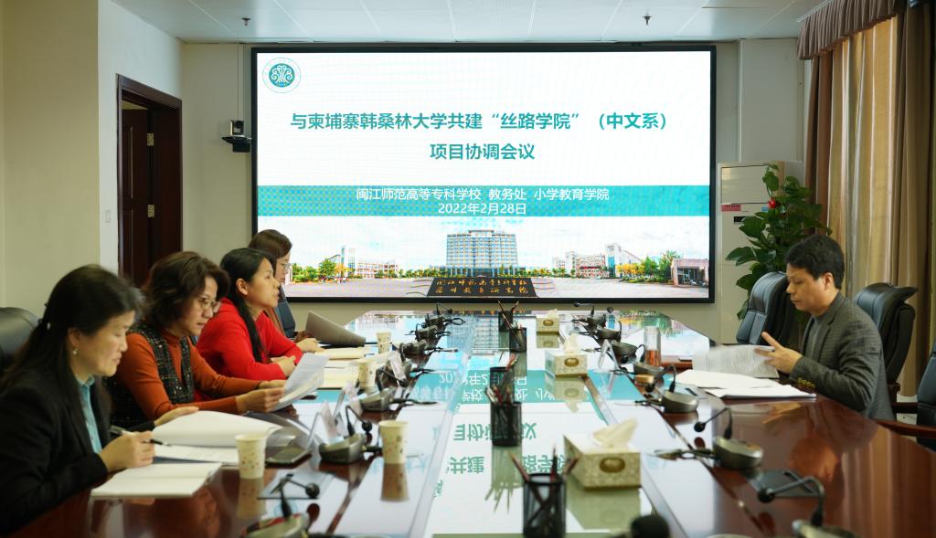 2月28日上午,国际教育学院组织召开了“与柬埔寨韩桑林大学共建‘丝路学院’(中文系)”项目协调会。校长杨建义、国际教育学院、教务处、小学教育学院负责人等出席了本次会议。