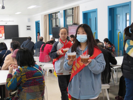 伴随着少先队员们带来的精彩表演:朗诵《拗九糯香情满满,孝道点滴粥里藏》、舞蹈《玉兰花开》、小提琴演奏《里丁格b小调协奏曲第一乐章》,一碗碗热气腾腾的拗九浓粥和送到老同志手里。一碗甜粥表达孝心,古语有云:“百善孝为先”,本次活动让同学们学会尊老、敬老、爱老,让爱的种子在孩子的心中生根发芽。