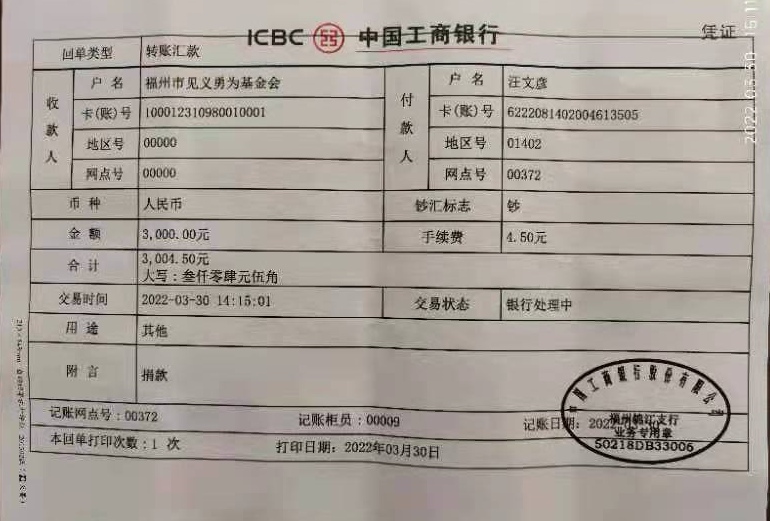 4月,闽江师专工会积极响应《向福州市见义勇为勇士捐款献爱心的倡议书》(榕义委〔2022〕3号)号召,向全体在职和离退休教职员工提出倡议,动员广大教职员工慷慨解囊,积极向见义勇为勇士捐款献爱心,为创造平安和谐福州做出自己的一份贡献。