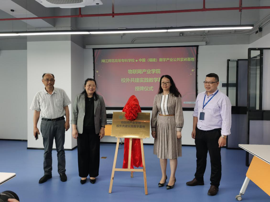 林旻一行还前往中国(福建)数字产业公共实训基地调研。基地副总经理邓立副详细介绍了基地目前在服务区域经济发展方面的成效与下一步规划。林旻表示,校企双方要在原有共建基础上,充分发挥校企协同作用,培养更多物联网领域专业人才,共同提升公共实训基地社会服务能力。林旻与邓立还代表校企双方为物联网产业学院校外共建实践教学基地揭牌。