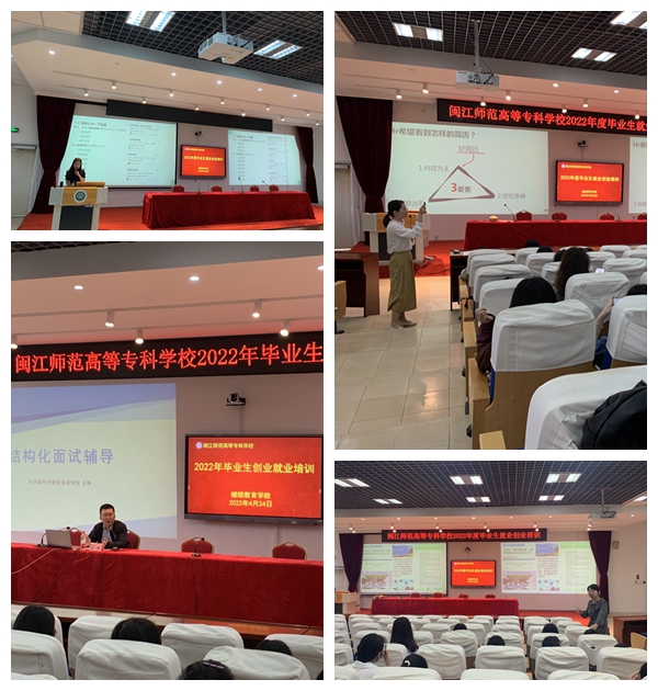 本次培训为期4天,共开设10门课程,计40学时。继续教育学院专程邀请了福州市人事人才公共服务中心主任陈舒捷为同学们开设课程《高校毕业生就业创业政策解读》,让大家详尽了解各种优惠资讯,为自己的就业创业之路添砖加瓦;还邀请了福建省农业职业技术学院农村发展研究所执行所长、团省委青创认证导师范金旺副教授给大家带来《新营销视角下的创业与就业》课程,提高毕业生的自主创业能力,营造自主创业的良好氛围,为那些想创业,却不知道怎么样去创业的同学们提供帮助和指导;同时特邀晋安区委党校的王铮老师为大家讲授《结构化面试的流程及技巧》,让大家在今后求职面试时可以有的放矢,从容应对。作为师范类院校,还有部分毕业生面临着全国教师招考,为此学校力邀多次参与教招面试的考官、专家何捷老师携他的团队一起现场教学,展示《教师招考面试技巧现场模拟及点评》,给师范类毕业生打好考前基础,未雨绸缪。除此之外,学校还设置了《就业创业心理建设与辅导》、《就业形势分析及创业经验分享》、《新媒体运营及入门指导》、《毕业生就业简历撰写》、《直播账号搭建》、《创业机会识别》等课程,均由校内专业教师授课,内容丰富多彩。相信经过这一系列的培训,无论毕业生们是选择就业,还是创业,都不再迷茫,对自己的美好未来充满信心。