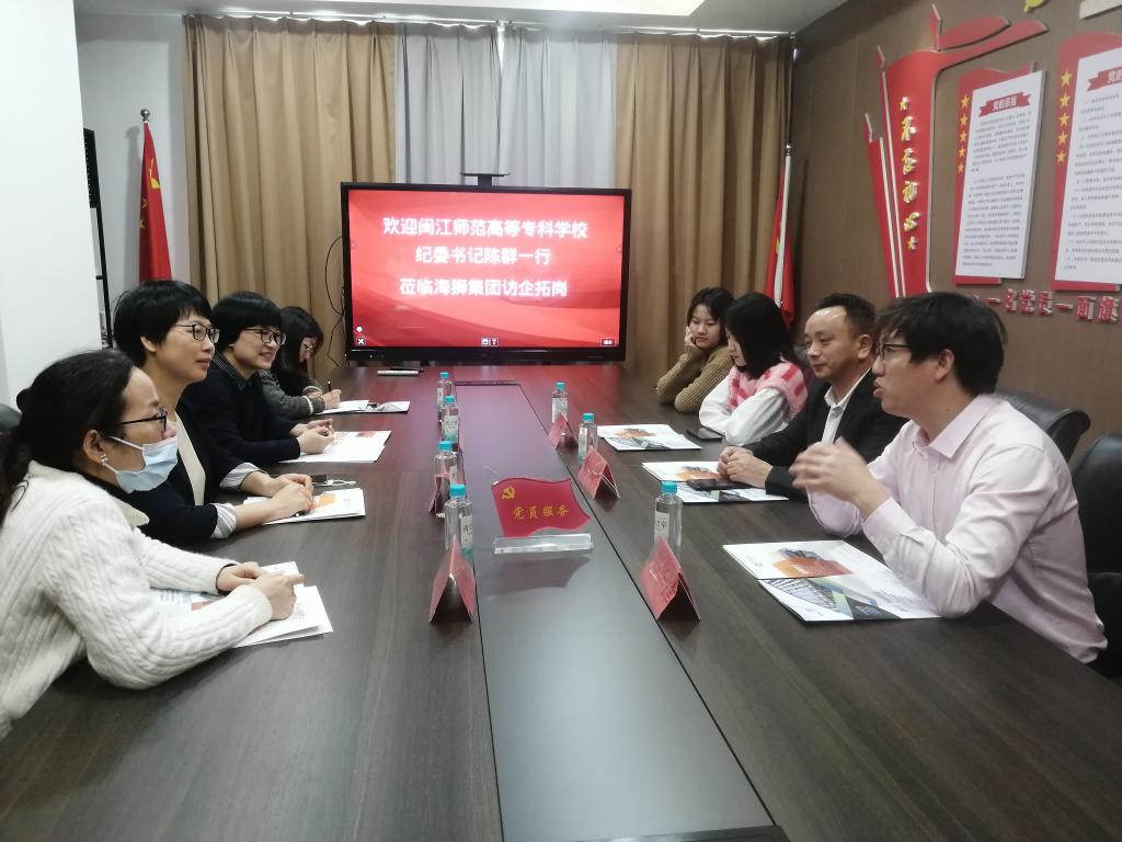 5月17日,纪委书记陈群带领外语商贸学院院长何少娴、副院长卢燕红及相关教师赴福建海狮集团开展访企拓岗促就业专项行动。