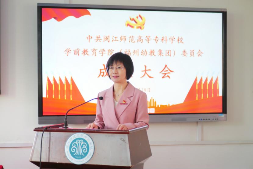 新当选的学前教育学院(福州幼教集团)党委书记吴春艳作表态发言。她感谢校党委对学前教育学院(福州幼教集团)的关心与支持,表示将带领党委班子踔厉奋发、追求卓越,全面加强政治建设,不断提升集团发展水平,全面履职尽责,切实扛起集团发展责任,全面深化作风建设,持续推进全面从严治党,为加快建设高水平的学前教育学院和幼教集团而奋斗。