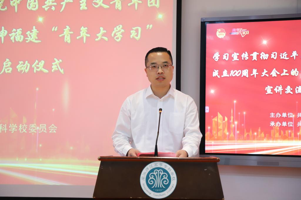 • 学习宣传贯彻习近平总书记在庆祝建团100周年大会上重要讲话精神福建“青年大学习”宣讲交流进基层活动启动仪式在我校隆重举行
