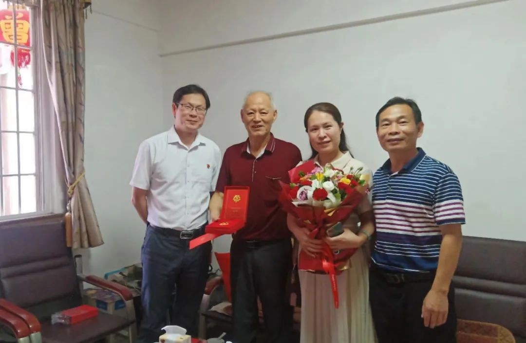 7月1日,受校党委委托,校党委委员、副校长刘翔炜带领医护学院党总支副书记陈锦香和工会副主席韦斌走访看望党龄50年以上的老党员郑国栋,颁发“光荣在党50年”纪念章。