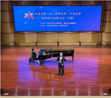 为进一步繁荣福建省、福州市音乐事业,发现培养和推出更多声乐演唱人才,推动舞台艺术整体水平的提升,根据《福建省文学艺术界联合会福建省文化和旅游厅关于举办福建省第六届“金钟花奖”声乐比赛的通知》(闽文联〔2022〕54号)文件精神,福州市文联、福州市文旅局于7月5日-6日在福州于山九日台音乐厅举行福建省第六届“金钟花奖”声乐比赛福州赛区选拔活动。艺术学院青年教师王刚以中国作品《黄河颂》、外国作品《La calunnia》,在复赛、决赛中均取得第一名的佳绩,最终以决赛成绩99.02分的优异成绩摘得该赛事美声组福州赛区金奖,并将代表福州市参加福建省第六届“金钟花奖”声乐比赛。