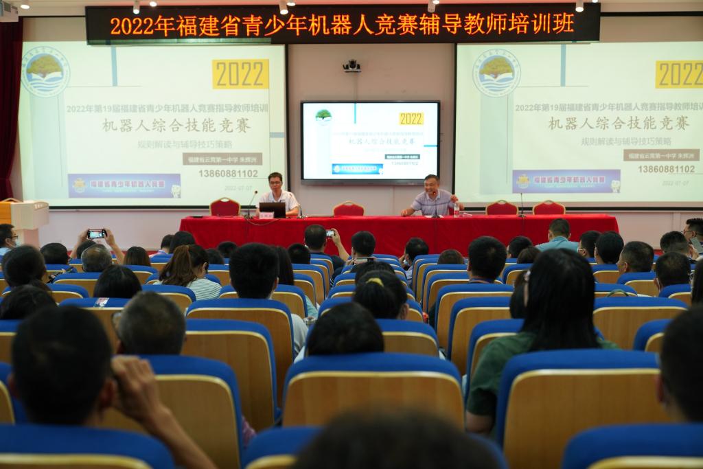 为推动全省青少年机器人竞赛的普及,进一步提高青少年机器人竞赛指导教师的综合业务水平,规范全省青少年机器人竞赛活动的组织工作,推进我省中小学科技教育事业的发展,福建省青少年科技活动中心和福建省青少年科技教育协会委托我校于7月6日-8日举办省青少年机器人竞赛指导教师培训班。来自全省各地的中小学科技教师、设区市机器人竞赛组织者、相关机器人企业技术人员等近230人参加培训。