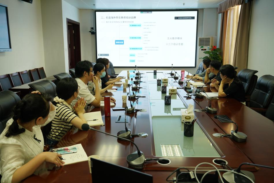 陈强充分肯定了海外华文师资培训工作取得的成效,并对2022年海外华文师资培训工作作了全面部署。他强调,我校的华文师资培训工作在过去几年取得了丰硕成果,希望今年参与华文师资培训工作的教师能够科学安排、细心打磨华文课程,进一步打造我校海外华文师资培训品牌。