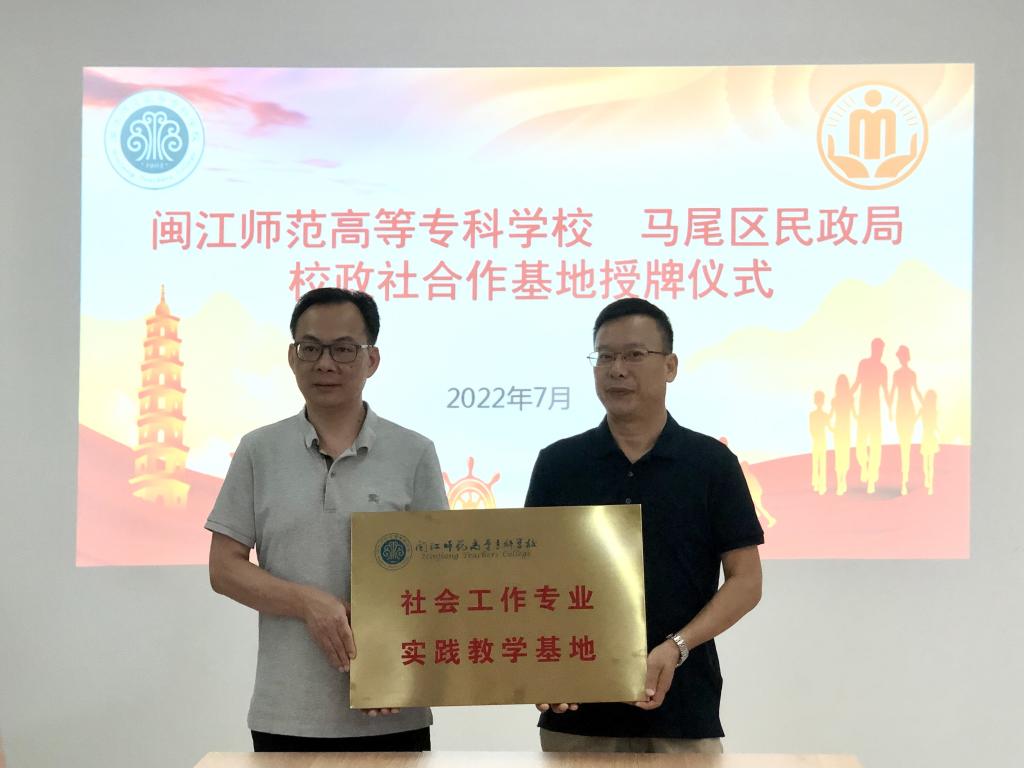 座谈会后进行了实训基地授牌仪式,由陈强和陈勤分别向马尾区民政局和马尾社会组织孵化基地进行授牌。