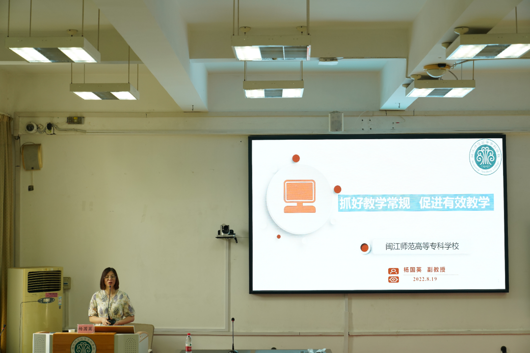 8月19日上午,闽江师范高等专科学校继续教育学院副院长、副教授杨国英为中学、中职新教师作《抓好教学常规,促进有效教学》专题讲座。