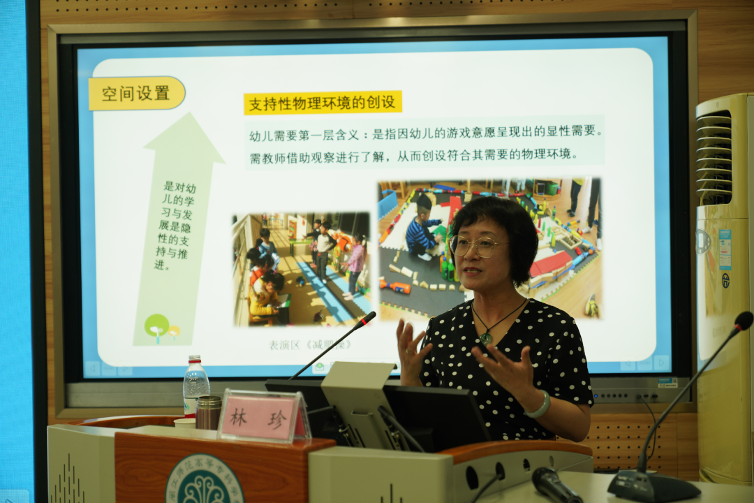 8月17日下午,福建省金山幼儿园书记林珍老师为幼儿园新教师作《儿童视角下的幼儿园区域游戏》专题讲座。