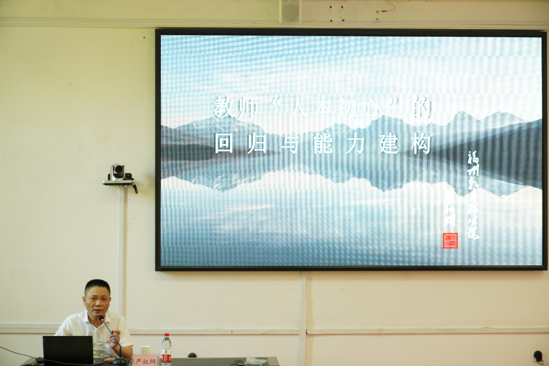 8月20日上午,福州教育研究院德育中心严权纲主任作《教师“人本初心”的回归与能力建构》专题讲座。