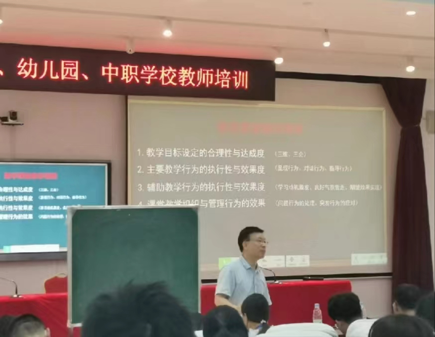 8月16日下午,闽江师范高等专科学校教育科学研究所所长、国培专家正高级教师林明华为中学、中职新教师作《基于素养培育的课堂教学观察与评议》讲座。
