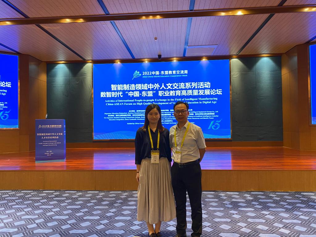 8月22-23日,2022中国-东盟教育交流周智能制造领域中外人文交流系列活动在贵阳举行。贵州省教育厅副厅长级督学欧阳嘉、教育部中外人文交流中心副主任夏娟、柬埔寨劳工部国务秘书毕·索潘、巴基斯坦信德省技术教育与职业培训局主席萨利姆·拉扎·贾尔巴尼出席活动并致辞。我校副校长陈强带领国际教育学院相关人员应邀参加了本次活动。