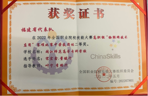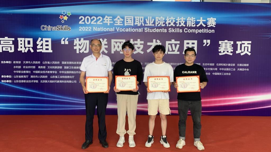 8月23日-8月26日,2022年全国职业院校技能大赛“物联网技术应用”(高职组)赛项在山东信息职业技术学院举行。来自全国29个省、自治区、直辖市的58支参赛队伍同台竞技。我校数字信息工程学院学生董健行、宋宏鑫两位同学与各参赛队伍同场竞技,努力拼搏,荣获该赛项团体二等奖。
