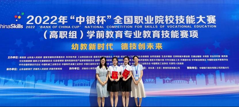 近年来,我院学生曾经三次登上国赛的领奖台,荣获国赛团体二等奖一次,国赛团体三等奖两次。该赛项优异成绩的取得充分展示了我校积极践行“以赛促学、以赛促教、以赛促建、赛教融合”的人才培养成果,也展示了学前教育学院师生积极向上、奋勇拼搏、团结协作的风采和学前教育专业的教学成果。