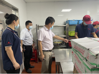 检查组一行来到各校区食堂,全面检查各食堂疫情防控、环境卫生、消毒记录、食品原料储存、食品留样、设备及餐具清洗消毒、用电用气安全等方面情况。对检查过程中发现的不足详细记录,现场告知食堂负责人,并要求各食堂建立整改清单,制订规范化操作流程,确保食堂工作安全稳定。