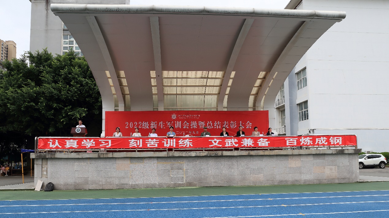 校领导表达了对承训部队的感谢,并对全体2022级新生提出三点希望,一要砥砺勇毅坚韧的品格,让青春葆有向上的力量;二要厚植家国天下的情怀,让青春绽放优雅的光芒;三要秉持矢志奋斗的状态,用青春书写崭新的篇章。期待新生能以军训中的饱满的精神、昂扬的斗志投入到今后的大学生活中,以奋斗之名,书写青春;以青春之名,不负韶华!