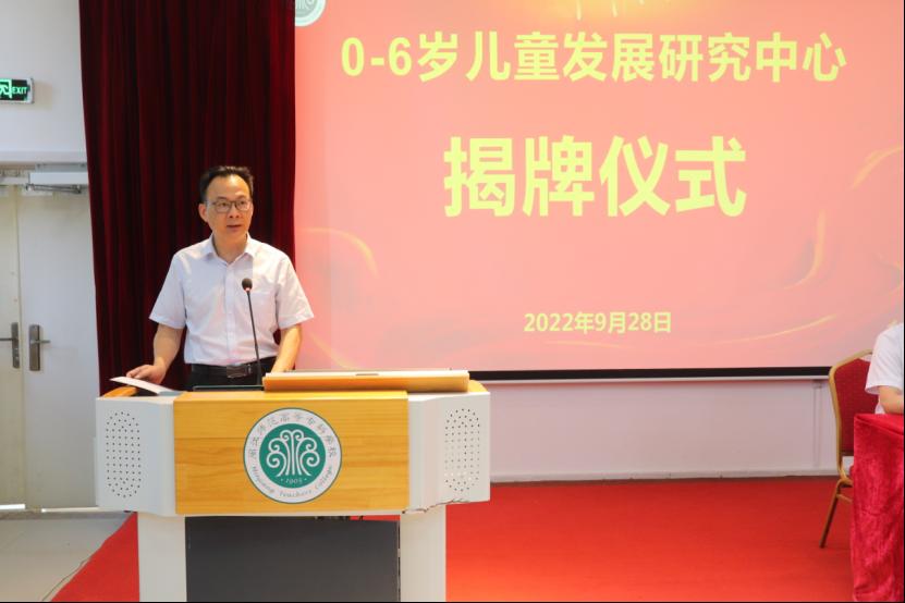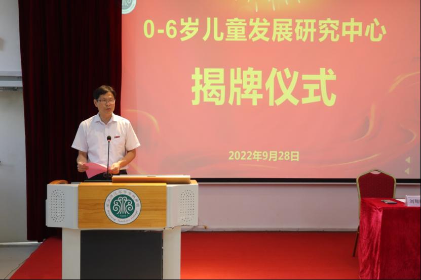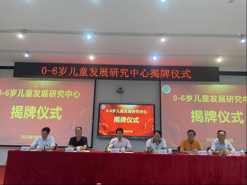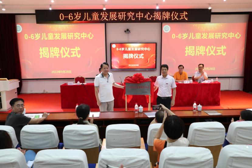 杨建义校长和吴明洪所长共同为0-6岁儿童发展研究中心揭牌