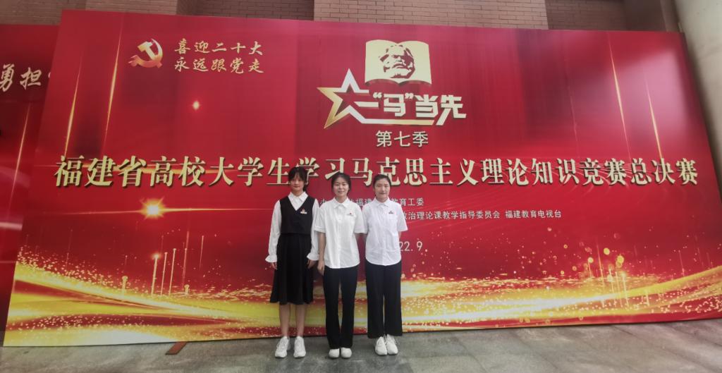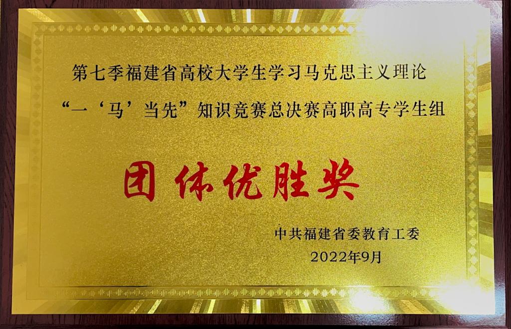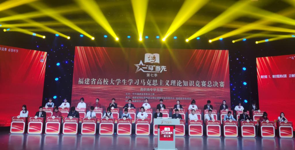 9月28日,由中共福建省委教育工委主办,福建省高校思想政治理论课教学指导委员会、福建省教育电视台共同承办的第七季福建省高校大学生学习马克思主义理论“一‘马’当先”知识竞赛总决赛在福建师范大学落下帷幕。我校学生参赛团队在首轮晋级赛上从50所高职高专院校中脱颖而出,进入总决赛,并在总决赛上再接再厉,表现突出,荣获省级“团体优胜奖”。