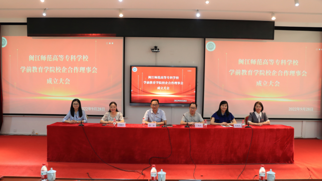 为进一步推进产教融合、深化校(园)企合作,充分发挥“双主体”育人模式的优势,推进职业教育改革创新,9月28日上午,我校于旗山校区2018教室召开学前教育学院校企合作理事会成立大会。副校长陈强、学前教育学院党委书记吴春艳、院长林毓君、副院长陈闽光、各校企合作单位负责人、学院师生代表到场参加。本次大会由副院长王丹丹主持。
