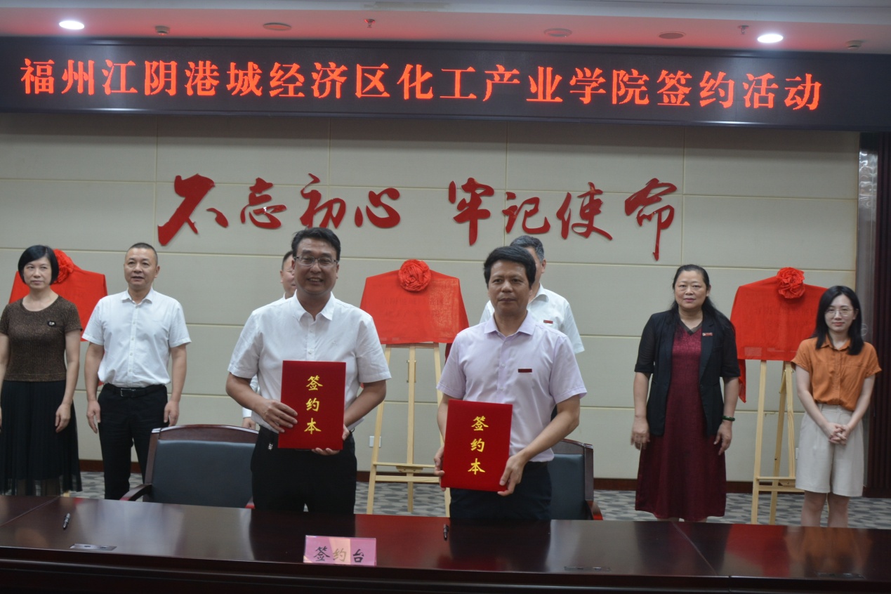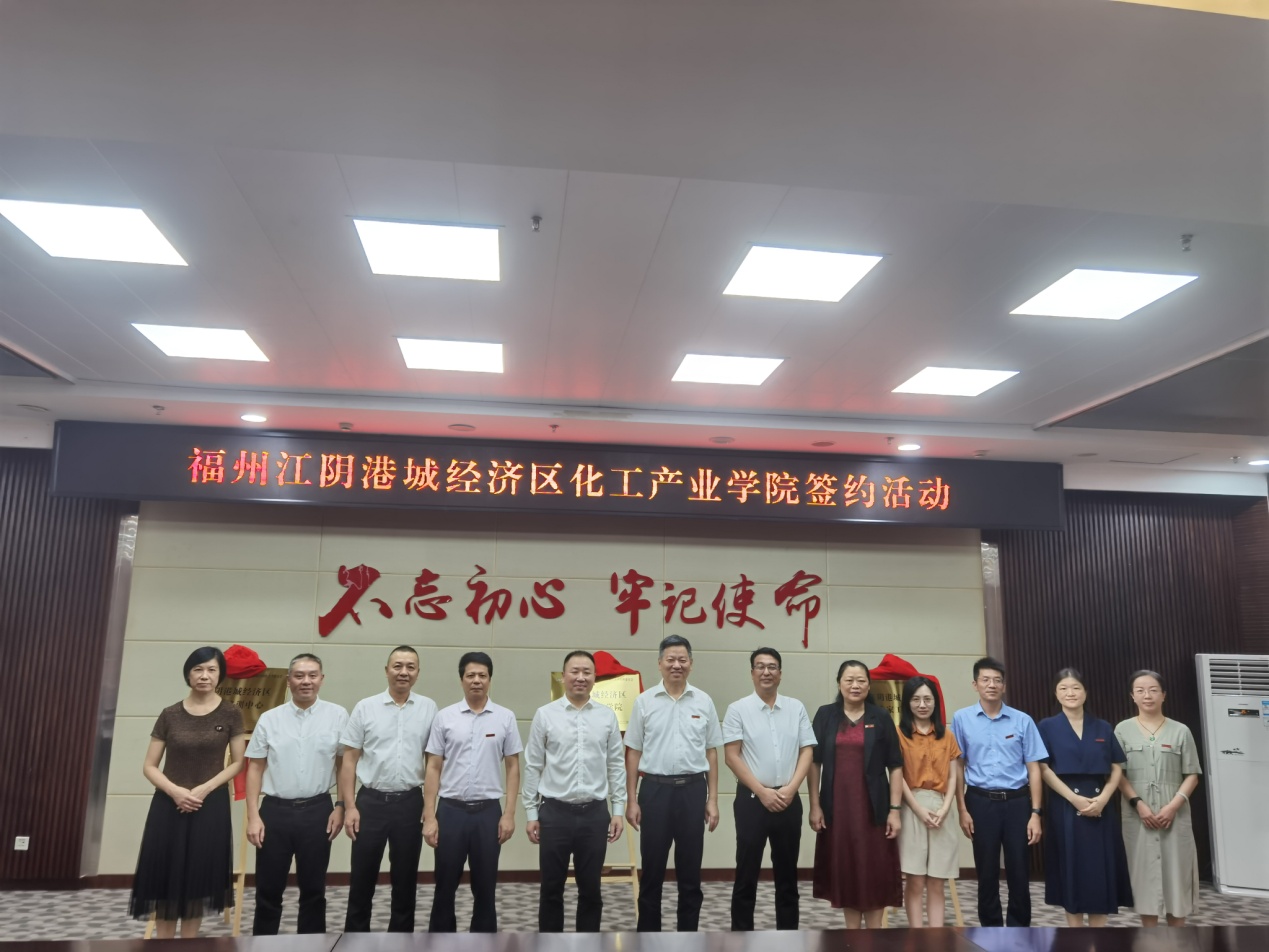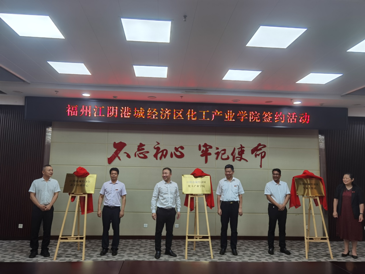 现场还举行了江阴港城经济区化工产业学院、江阴港城经济区职工培训中心和江阴港城经济区专家工作站的揭牌仪式。未来十年,在化工产业学院建设过程中,学校将充分发挥办学优势、人才优势和专业优势,让培养出来的学生理论与实践相结合,适应企业生产环境、领略企业管理文化,使之符合化工行业的人才需求,实现人尽其才。学校也将努力与江阴港城经济区管委会一道,共同把产业学院打造成区域标杆,成功典范,为福州江阴港城经济区的高质量发展提供人才支撑和智力支持。