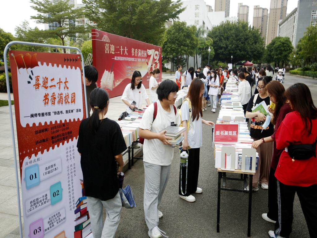 为迎接党的二十大胜利召开,营造浓厚书香校园氛围,我校图书馆于10月5日在旗山校区、仓山校区同步举办以 “喜迎二十大,书香满校园” 为主题的“你选书,我买单”活动。