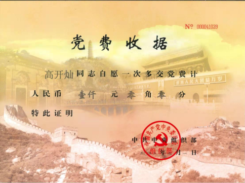 10月15日,我校离退休第二党支部的84岁老党员高开灿收到一份“特殊党费”收据。