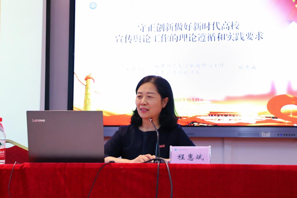 10月21日下午,我校于旗山校区教学楼2018教室举办宣传工作专题辅导讲座,邀请福建师范大学新闻宣传中心主任、党委宣传部副部长程惠斌莅校开讲。讲座由宣传统战部部长张信容主持。