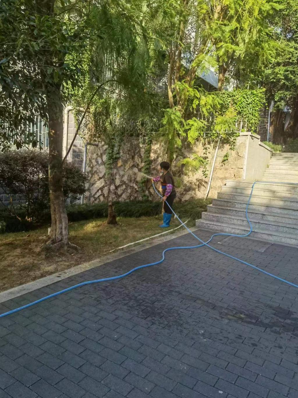 美化绿化亮化校园。全力做好校园保洁服务和公共场所的消杀、消毒,及时疏通排污管道,各类垃圾及时清运,保持校园干净、卫生、整洁;强化绿化工作,修剪花圃,建设花园校园;校园灯光全部更新加亮,随处可见学子们在操场、羽毛球场的矫健身姿。