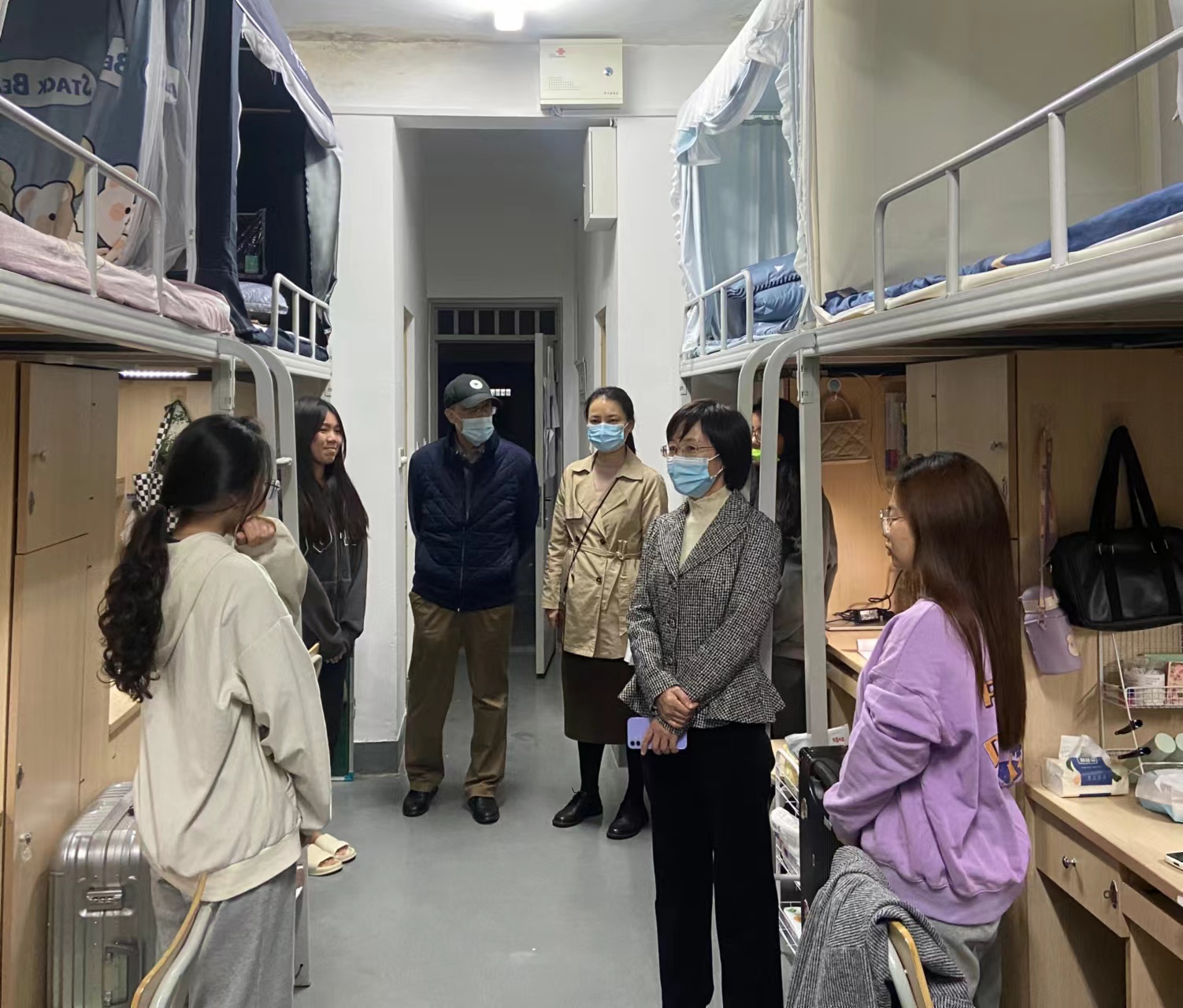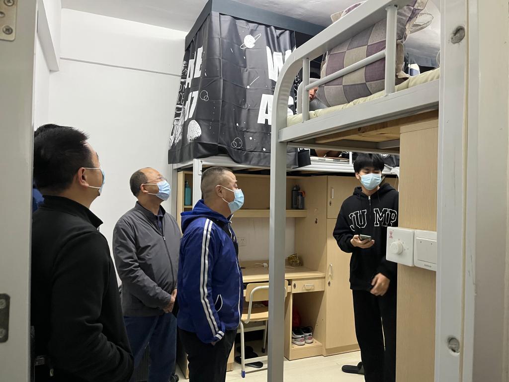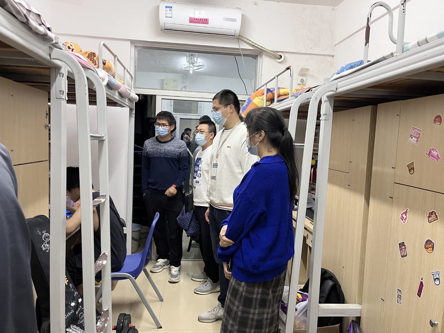 每到一个宿舍,老师们都与学生进行亲切的交谈,详细关注大家的学习生活情况。老师们亲切地询问同学们“常态化疫情防控背景下生活是否方便?”“大家相处的宿舍关系怎么样?”“食堂的饭菜怎么样?”鼓励学生要养成良好的生活和学习习惯,规划好大学生活,自律学习,劳逸结合,提高效率。
